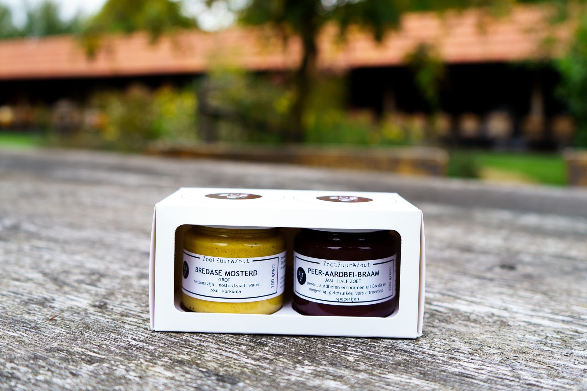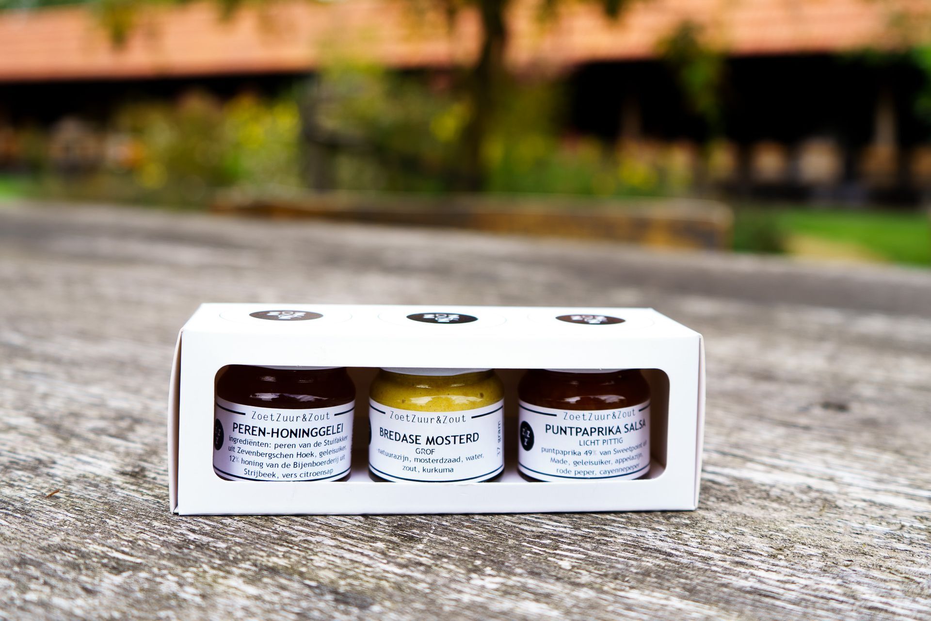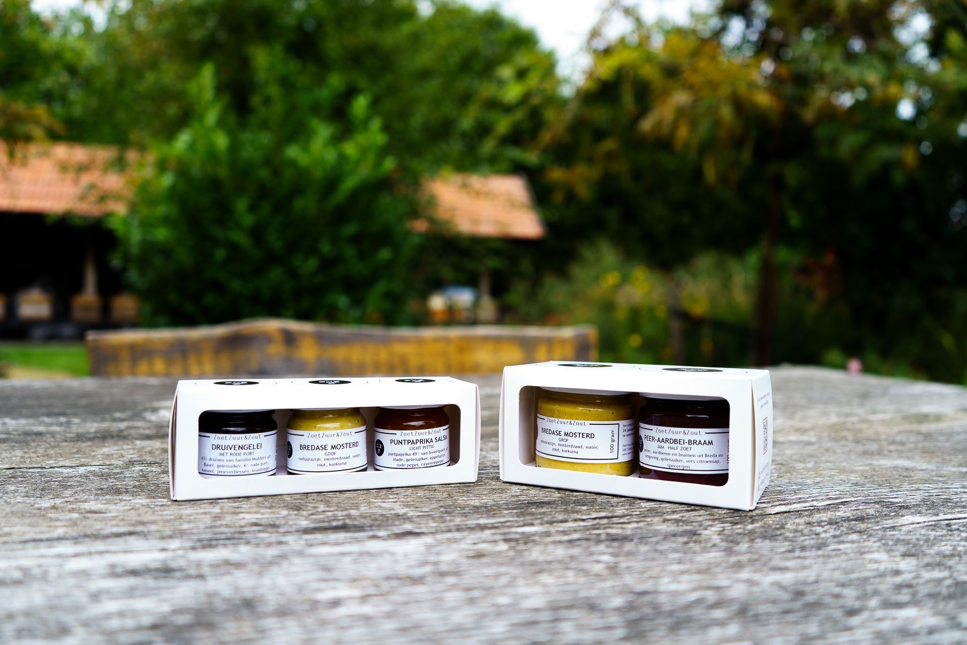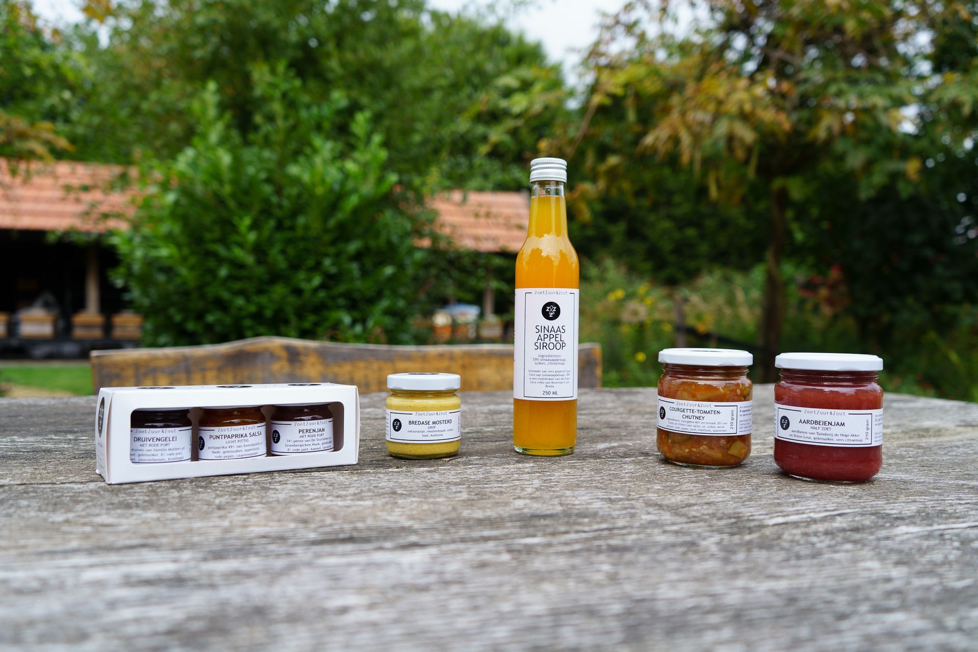 Bij ZoetZuur&Zout vind je altijd een passend geschenk. Elk pakket wordt persoonlijk samengesteld in overleg, afgestemd op je wensen, de gelegenheid en het seizoen. Zo ontstaat er altijd een uniek pakket, gevuld met onze eigen producten en aangevuld met eerlijke lekkernijen uit de streek. De inhoud en prijs hangen af van de samenstelling en de gekozen verpakking.